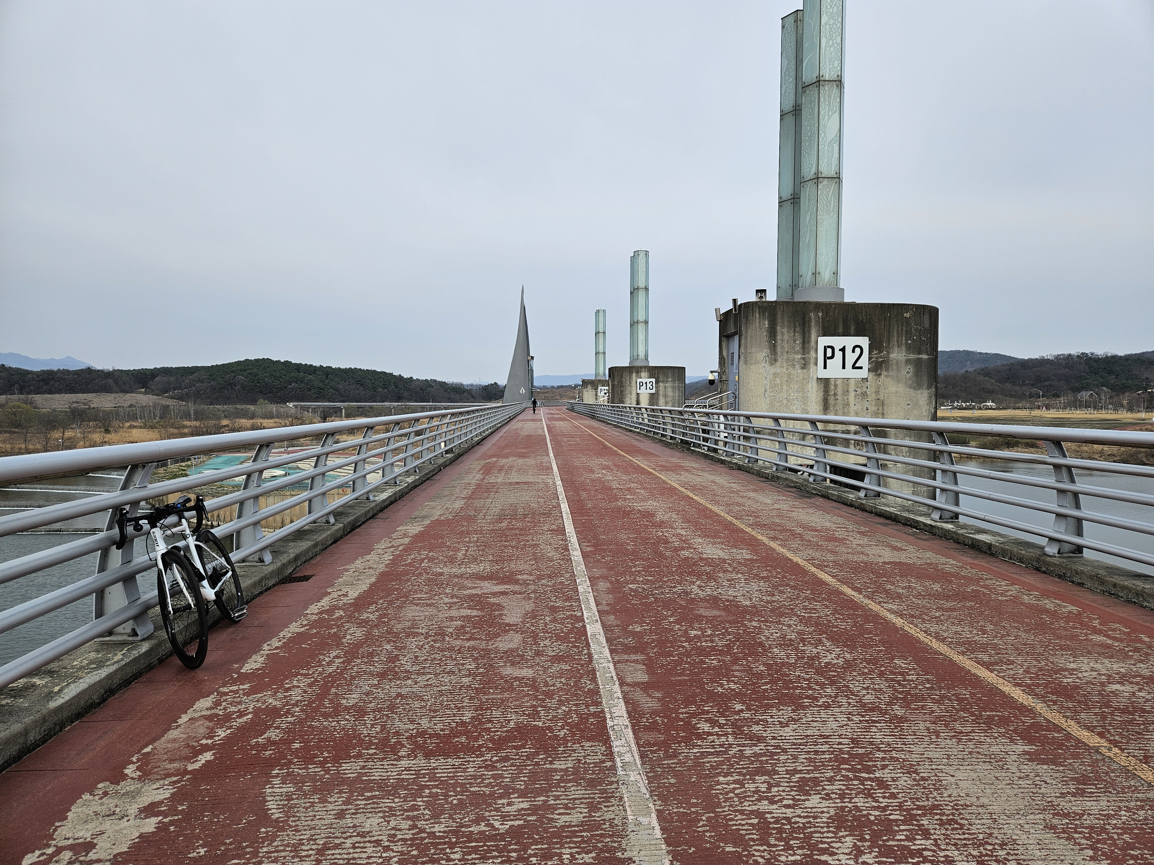 팔당대교 74km 지점 꽤 멀리 왔습니다.